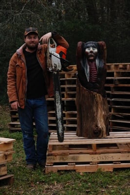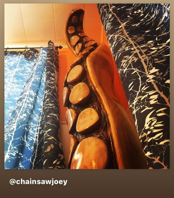 Joseph Burns, aka Chainsaw Joey, is a Houston-based artist who specializes in sculptural art and woodworking. He is a graduate of Lamar University and holds a Bachelors of Science in Geology. Joey owns and operates Chainsaw Joey LLC and Hello Walls d.b.a., an art and furniture installation company.